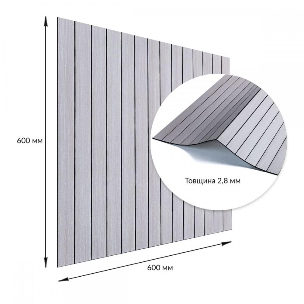 Покрытие виниловое самоклеющееся 3D рейки 600х600х2,8мм Кедр серебряный SW-00002198