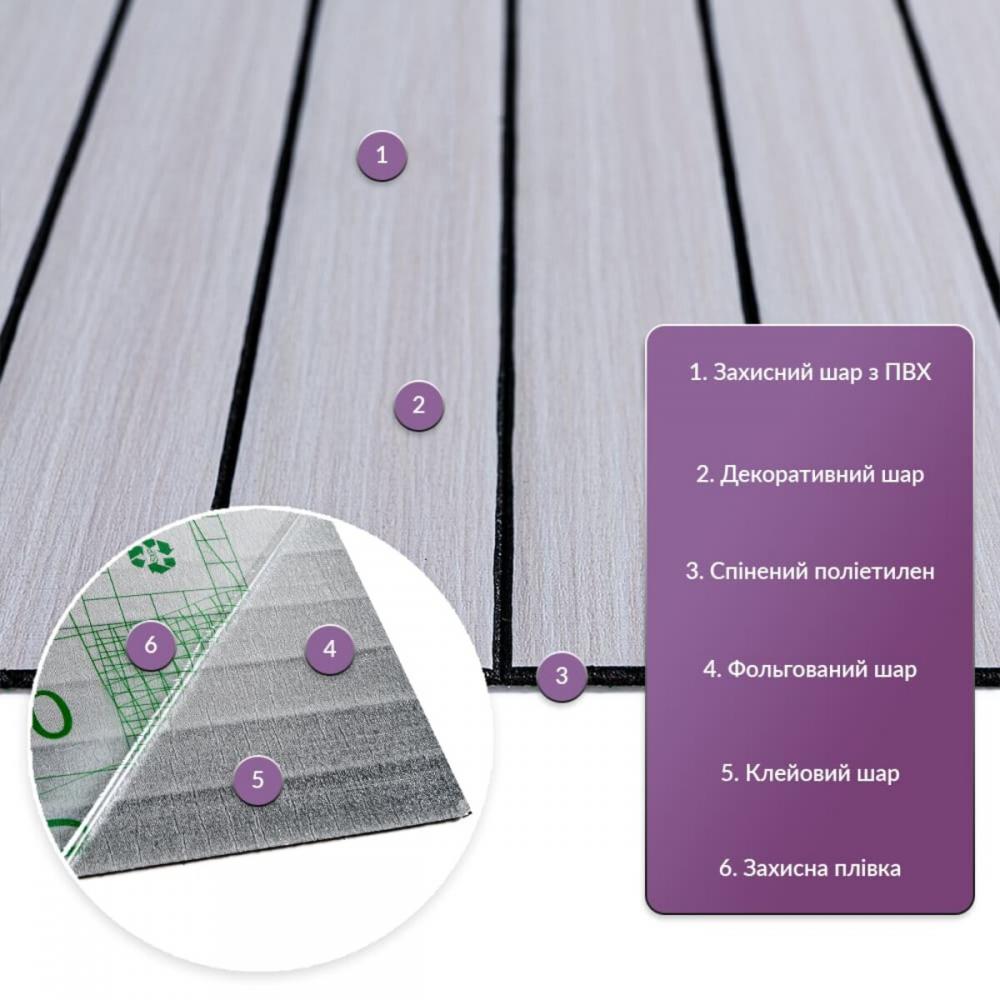 • Декоративный слой: пленка с цветной печатью высокого разрешения, которая полностью имитирует фактуру природных материалов благодаря четкому и детализированному изображению.