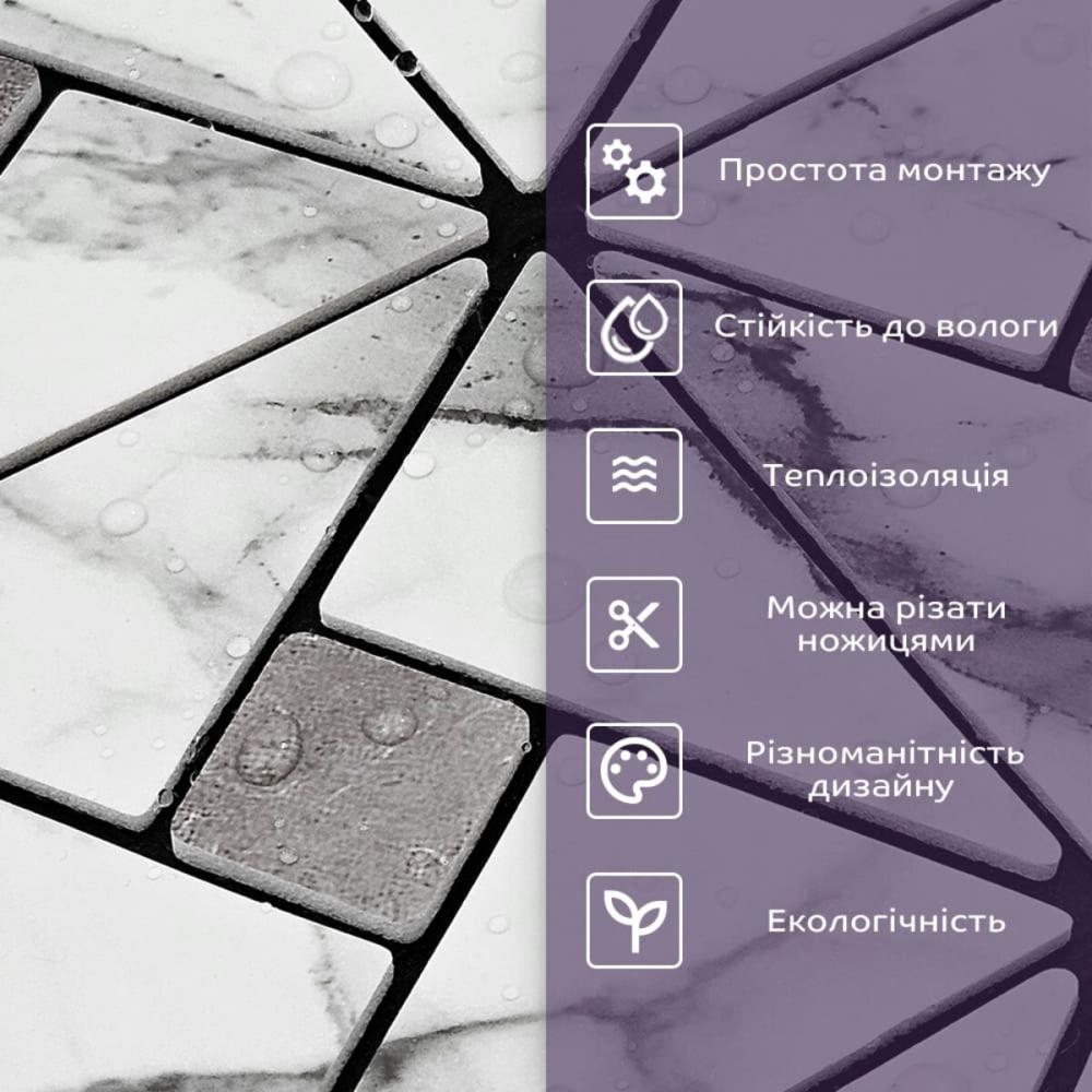 - Устойчивость к влаге: материал устойчив к воздействию влаги и пара, а также к появлению плесени, что делает его подходящим для использования в помещениях с высокой влажностью, таких как ванные комнаты и кухни. Плитка подойдет для создания фартука кухни, можно клеить возле плиты на расстоянии не менее 20-25 см;