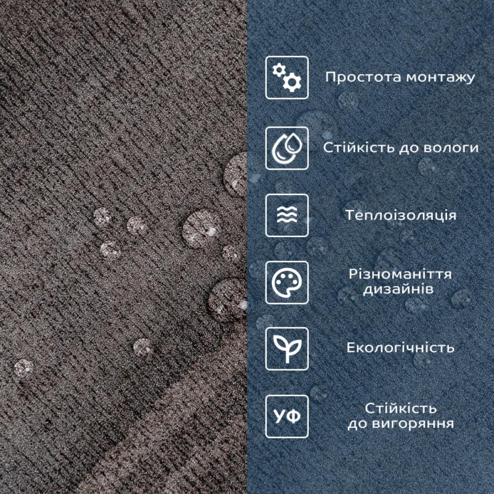- Полімерний шар: захищає від потертостей та дрібних механічних пошкоджень, забезпечує довговічність використання, а УФ захист допомагає запобігти вигоранню, зберігаючи колір насиченим.